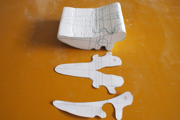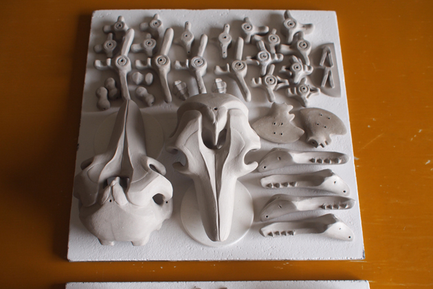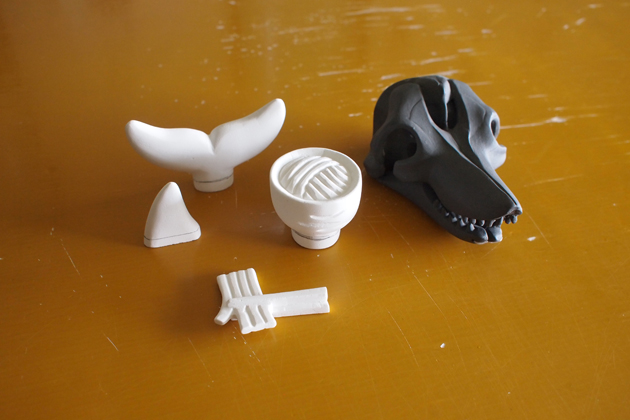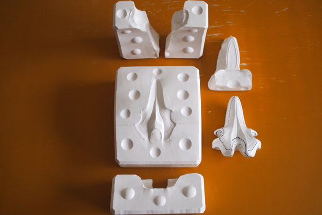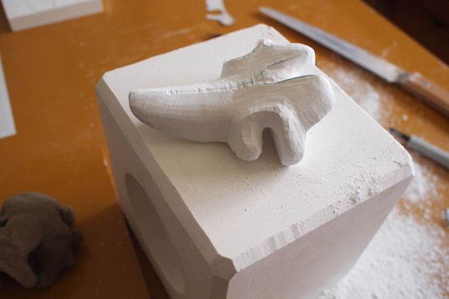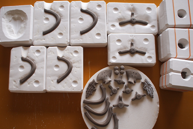 原型はパーツごとに石膏から削り出し、それらをもとに鋳込みの型を石膏で作りました。