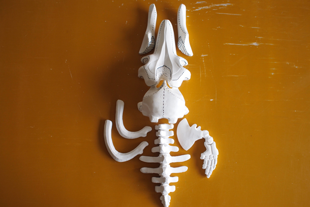 10万年後の未来からきました!というコンセプトで、ことちゃんの化石(骨格模型)を制作しました。骨や化石が大好きです。