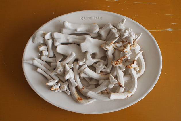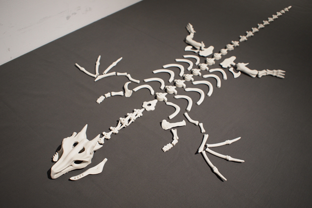 「まずは骨」と考え、ドラゴンの全身骨格を磁器で作成しました。