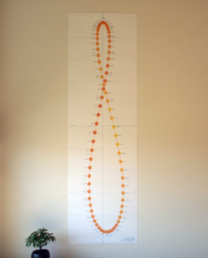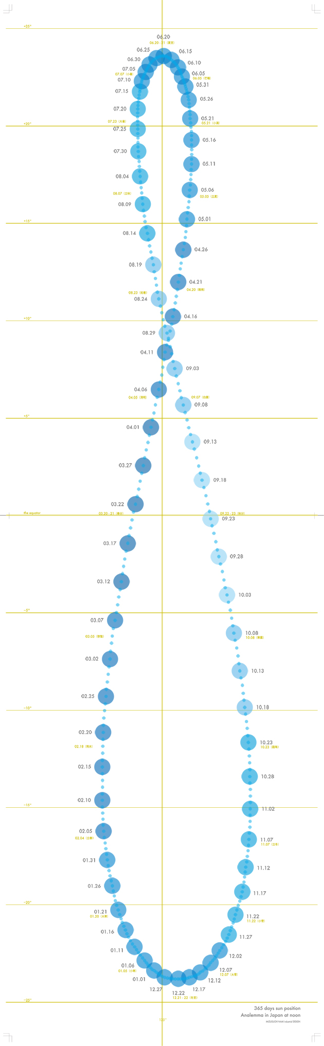 このカレンダーは、日本における正午の太陽の位置を、1年間365日分印したものです。