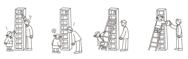 たとえば、背の高い本棚の一番上にお気に入りの本があるとします。
