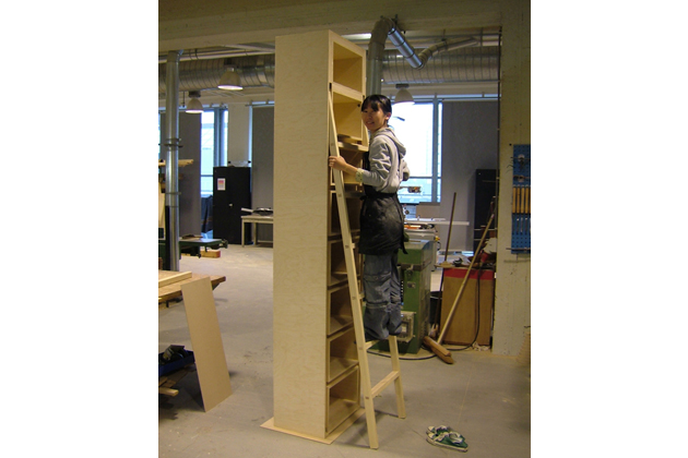 梯子が隠れた背の高い本棚を作ってみました。