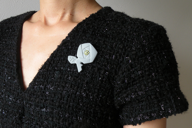 香りをつけて楽しむ、アロマディフューザータイプのブローチです。