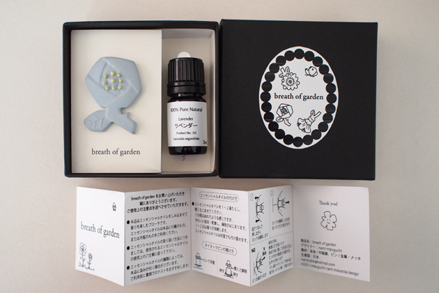 エッセンシャルオイルは直接体につけられませんが、breath of gardenにしみ込ませることにより、お気に入りの香りをいつでも身につけることができます。