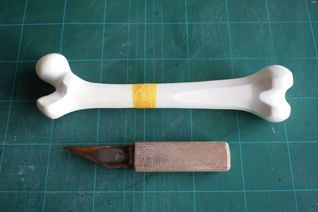 骨の形がリアルすぎると気味が悪くなるため、解剖学のイラストを20分間眺めて大腿骨の要点を掴んだ後、頭の中でシンプル化して彫りだしました。