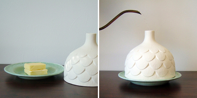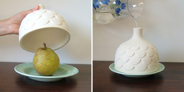 なるほど!と思いました。そういえば、素焼のワインクーラーやジャグなど気化熱で冷やすテーブルウェアもありますね。気化熱を利用した何かを作ろうと思い、作ってみました。